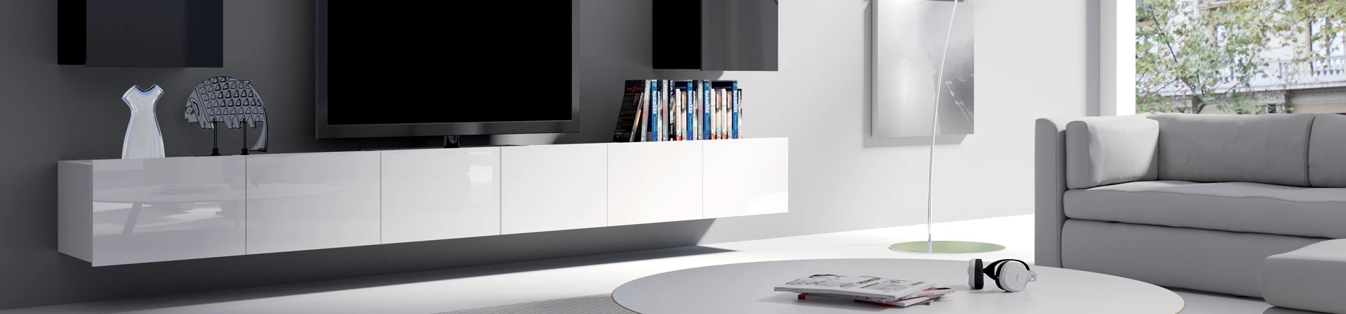 Obývacia stena PRIMO II, obývací komplet v retro štýle na drevených bukových nožičkách. Materiál použitý pri výrobe DTD laminovaná s ABS hranami. Zaoblené lišty na korpusoch z MDF. Farebné prevedenie dub riviera / biela, kovové úchytky, použité kvalitné pánty. LED osvetlenie nie je zarátané v cene.